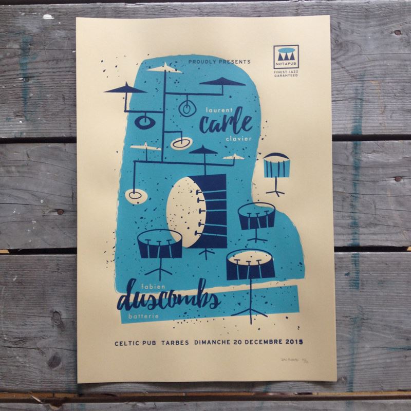 En 2013 creó su taller de serigrafía y risografía con la idea de diversificar su negocio, en el que auna sus dos pasiones, el diseño y el jazz, produciendo posters que viajan a todas partes del mundo.